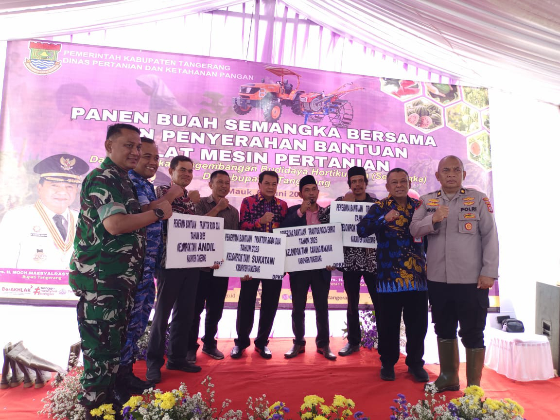 Panen semangka ini sekaligus menjadi momentum penyerahan simbolis alsintan dari Pemkab Tangerang kepada para petani di wilayah Kecamatan Mauk. Penyerahan dilakukan oleh Bupati Tangerang, Drs. Moch. Maesyal Rasyid, M.Si, yang hadir bersama jajaran pimpinan daerah.